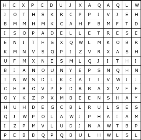 La sopa de lletres és un passatemps que consisteix a localitzar una sèrie de paraules en una graella plena de lletres, de manera que es pugui llegir en vertical, horitzontal o diagonal. Alguns mots estan en sentit invers i junt amb combinacions sense significat per augmentar la dificultat.